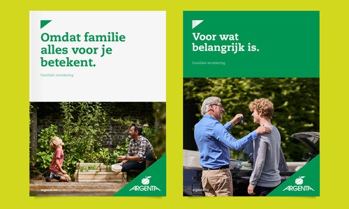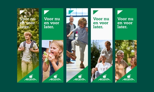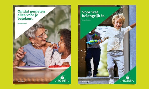 The style of Argenta was very monolithic and static. We wanted to integrate more recognisability and dynamism in their current communication. A pragmatic style approach was used to visualize the fact that Argenta is your financial partner at any time in life.