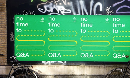 The logo itself represents a 'single line shape' that has no actual beginning nor ending. It connects in a single flow a '4' and a 'P'. A brighter green colour was chosen to set them apart from their competitors.