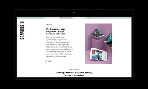 Over 370 employees offer an answer to the frequent question of shorter delivery dates and high-quality printing. The Graphius production system, with 113 recent Heidelberg print towers and completely integrated bookbindery is among the most extensive on the European market. The whole production, ranging from a brochure to a hardcover book, is done in-house, giving maximum control over quality, budget and throughput time.