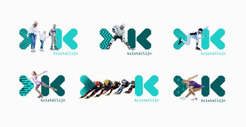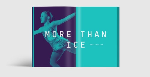The pattern layer adds complexity and modernity to the brand. These bold patterns are graphic, and energetic- inspired by the movement of ice skaters. As part of the new brand we developed an bold and expressive colour palette. The typography, graphical patterns, imagery and the Kristallijn mark all work harmoniously together, creating a distinctive graphic language.