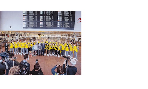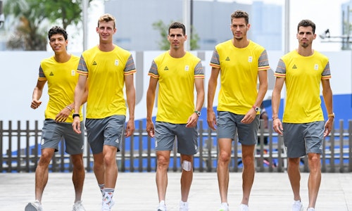 Photography by Belga Pictures. Sportswear by peaksportswear.com. Sportswear developed for teambelgium.be. Picture at the airport by Alexander De Croo.